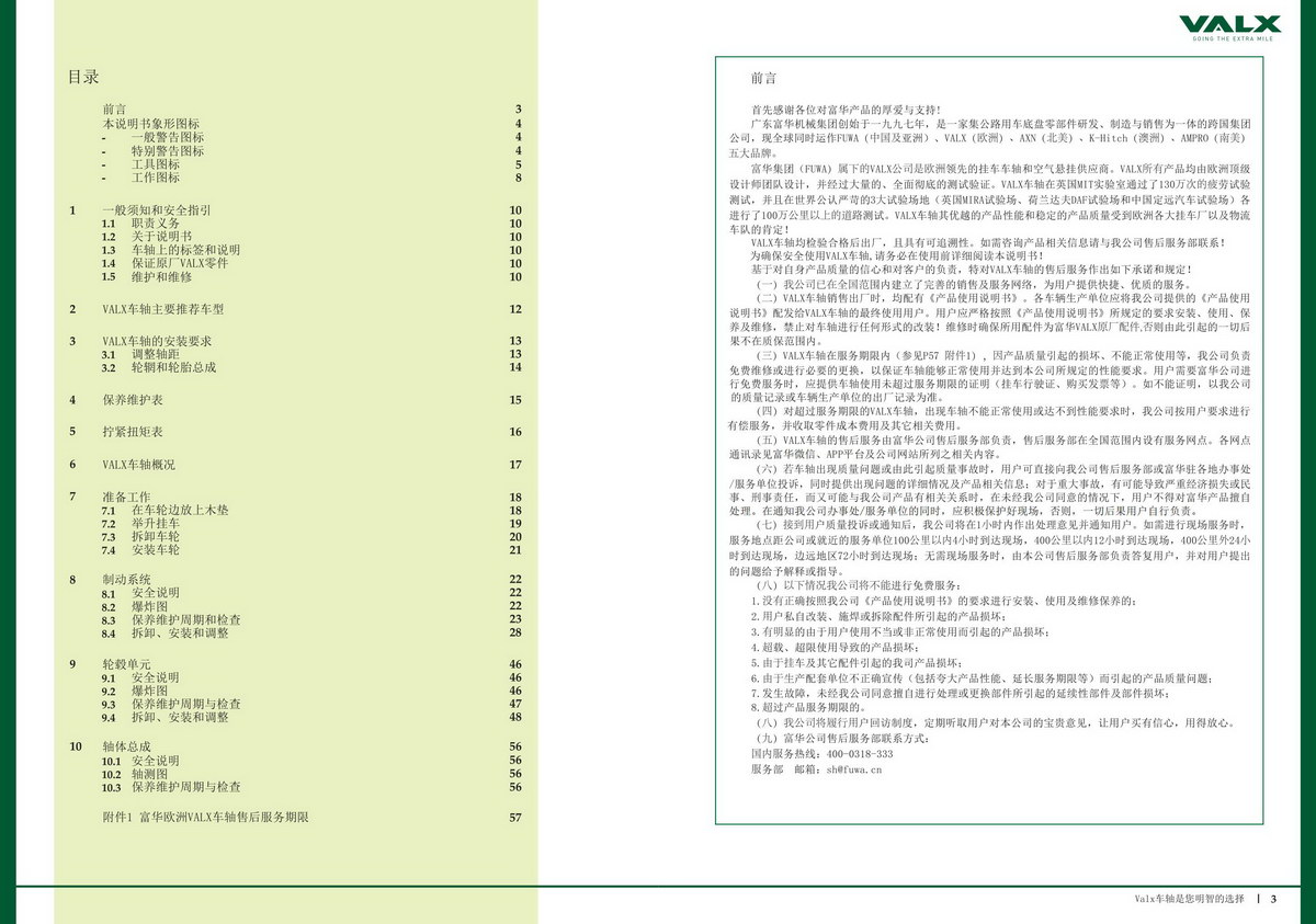 富华沃胜VALX系列车轴【产品使用说明书】