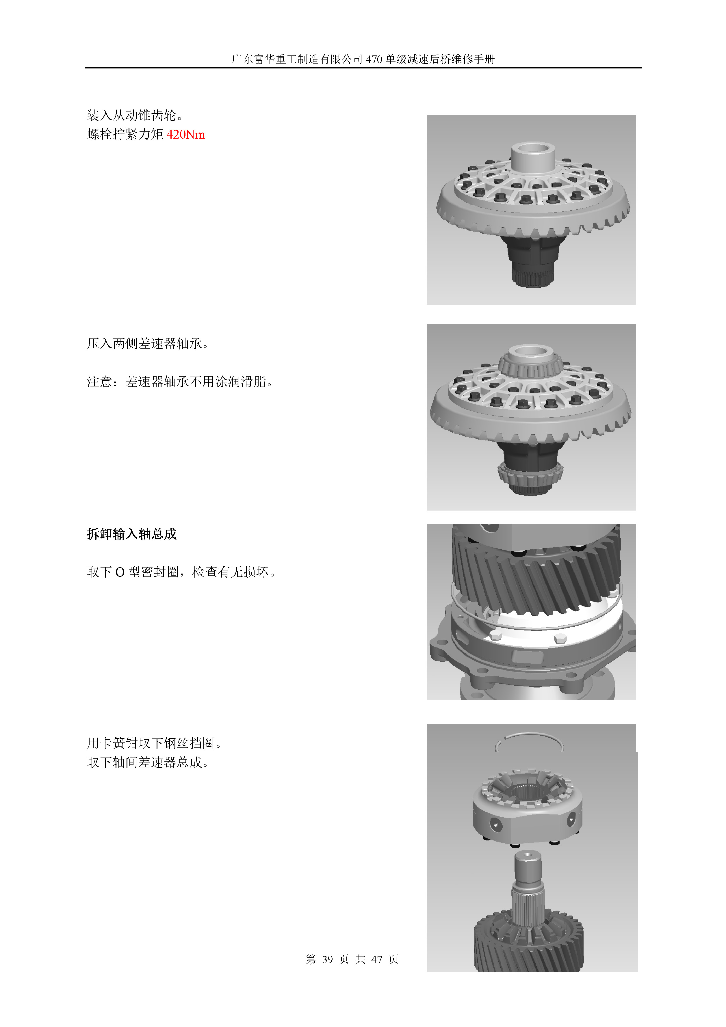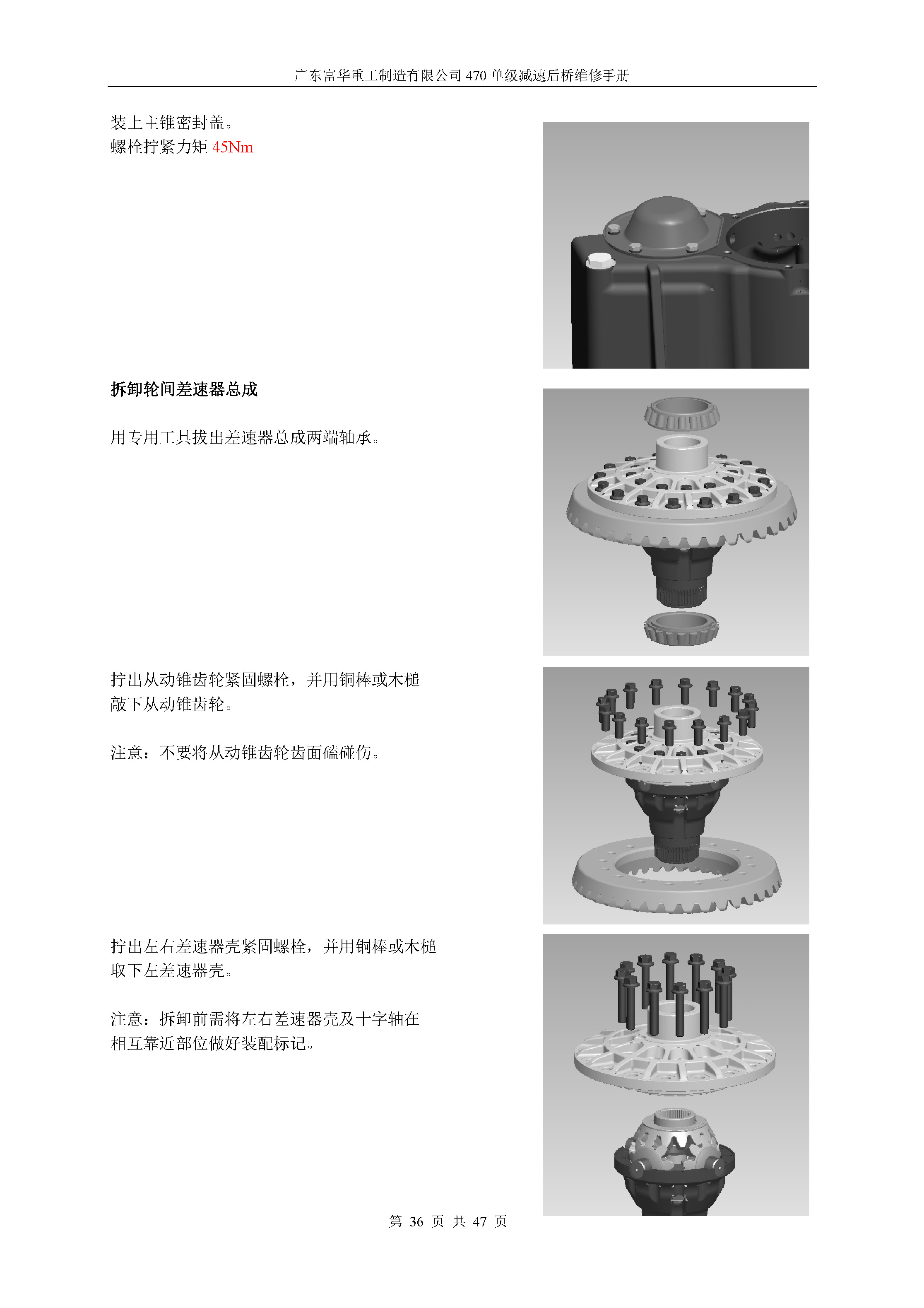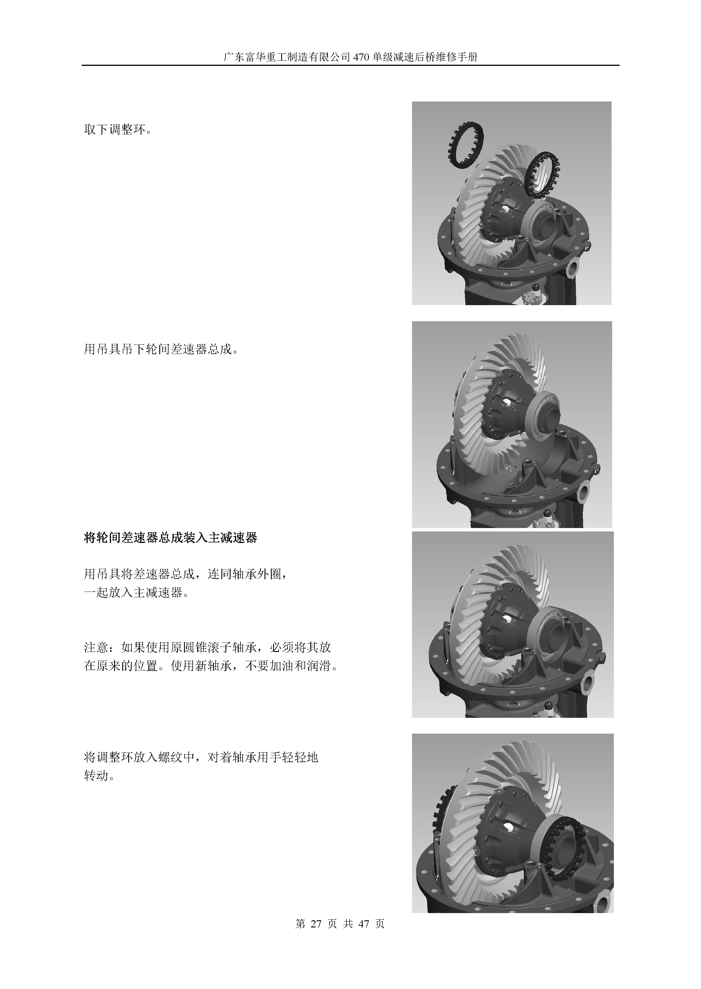 470单级减速中桥维修手册
