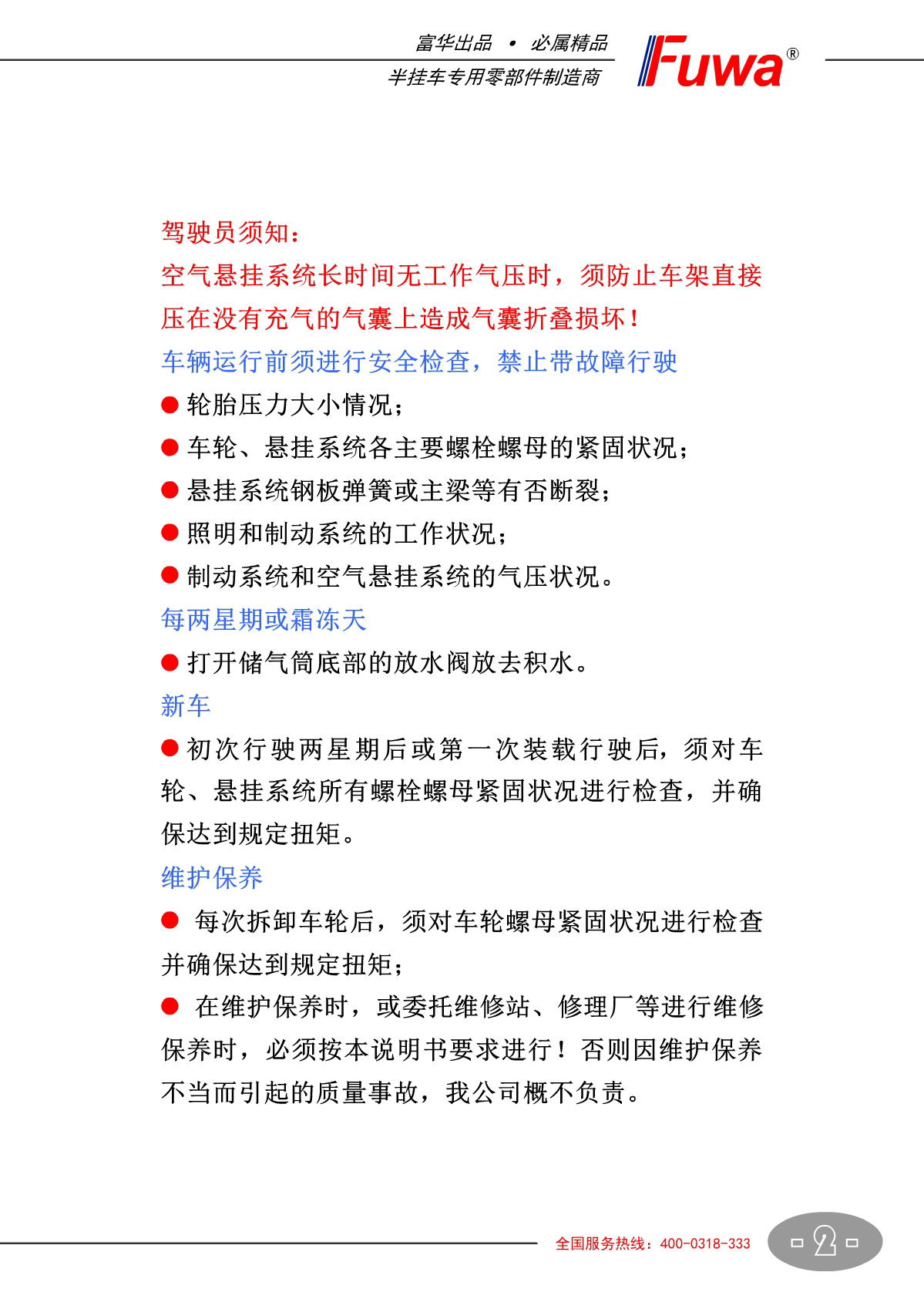 Previous: FUWA series air suspension 【Product Operating Manual】