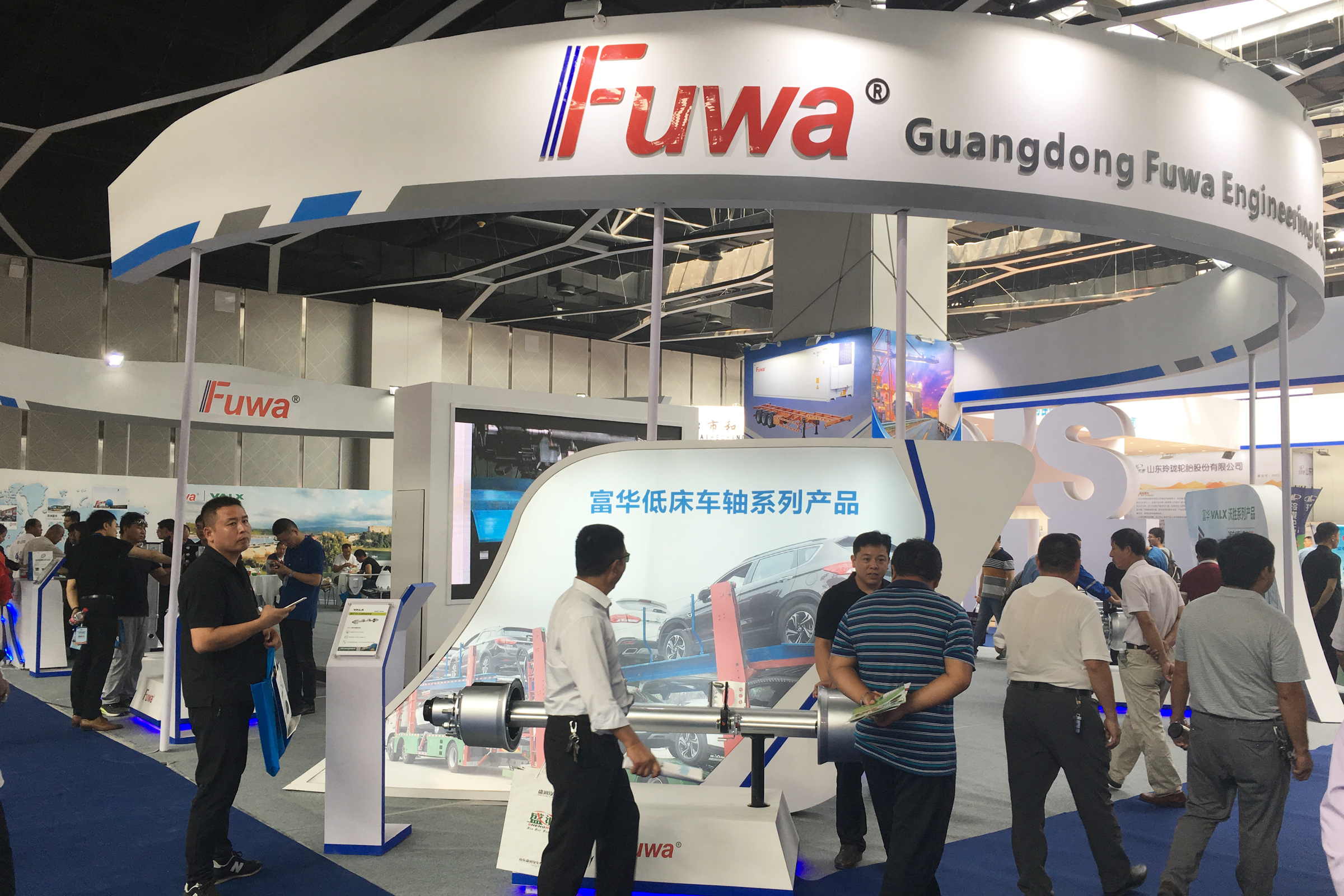 此次广东富华集团携多款明星产品盛装亮相,除了VALX沃胜系列产品以外,富华中置低床车轴产品、电动支腿以及冷箱产品均是首次登陆梁山车展。